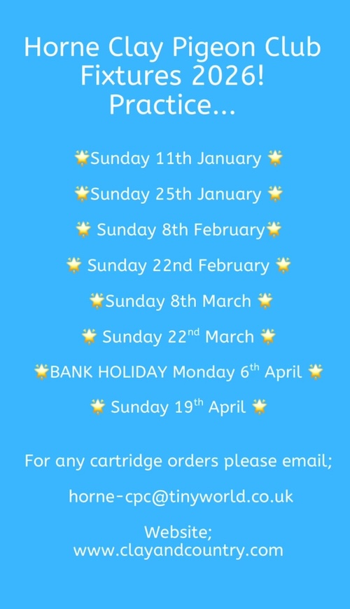 We hope you have a perfect 2 weeks! And we look forward to seeing you again on the 25th January! At Horne Clay Pigeon Club